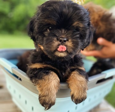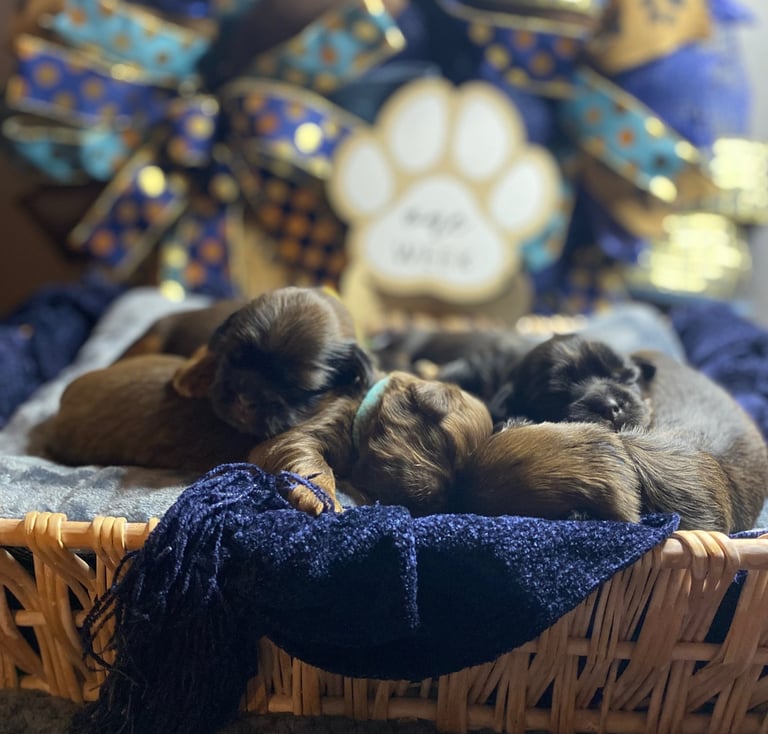 Our chocolate Shih Tzus are unique for their rich, luxurious coats. We specialize in breeding and nurturing these stunning dogs, infusing sweetness into their elegance. The result is a regal and affectionate companion that stands out both in beauty and temperament. We are passionate about the rich heritage and stunning beauty of the Shih Tzu breed, particularly drawn to the unique coat colors of chocolate/liver and black. With our focus on breeding these exceptional colors, we aim to offer Shih Tzu puppies that embody both the charm of the breed and the allure of their rare coat colors.